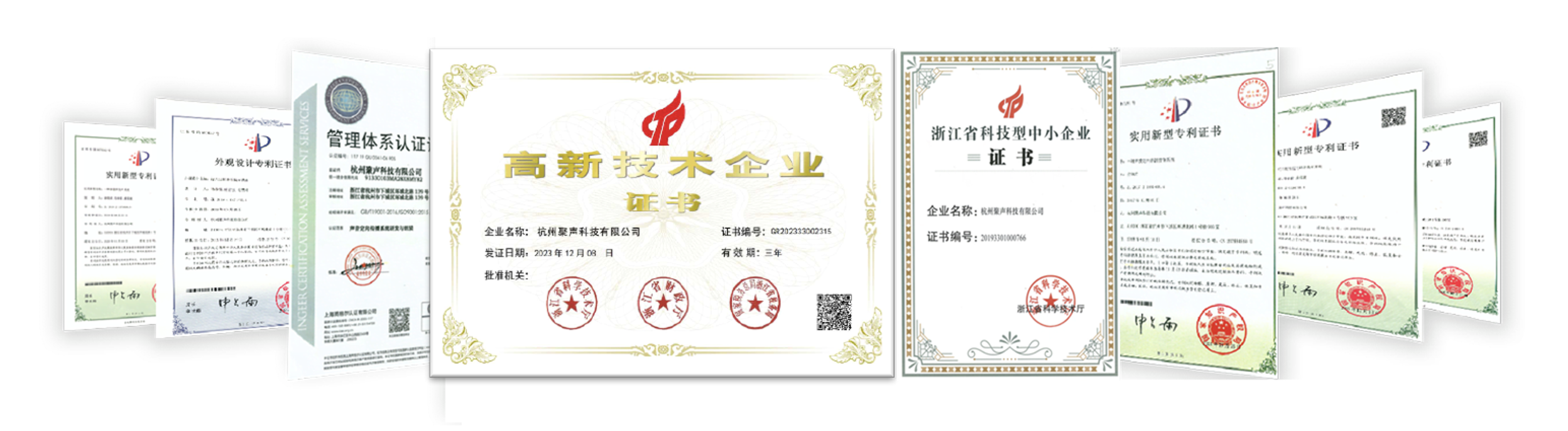 作为国内定向声学技术应用的领航者,目前公司已获得相关专利和软著证书近40余项,是中国技术市场协会《公路运行安全监测自动预警系统技术要求》、浙江省道路交通安全协会《便携式声光一体预警设备》、上海市建设协会《HZJS塔式起重机声音安全围栏系统应用技术标准》等标准的主编及参编单位,获得行业的一致认可。同时也参与各保险公司在道路安全等关键领域风险减量工作的落地。
